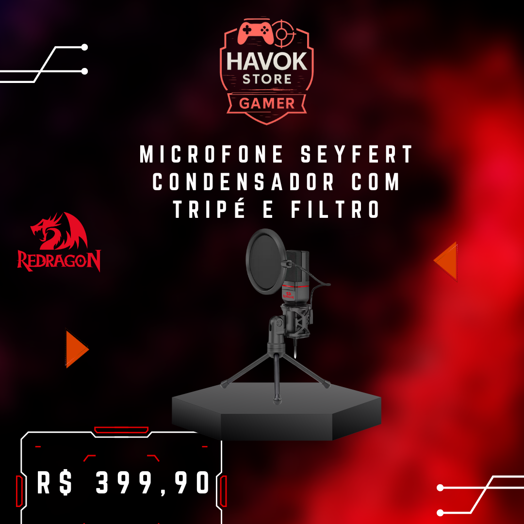 Microfone Condensador Seyfert com Tripé e Filtro